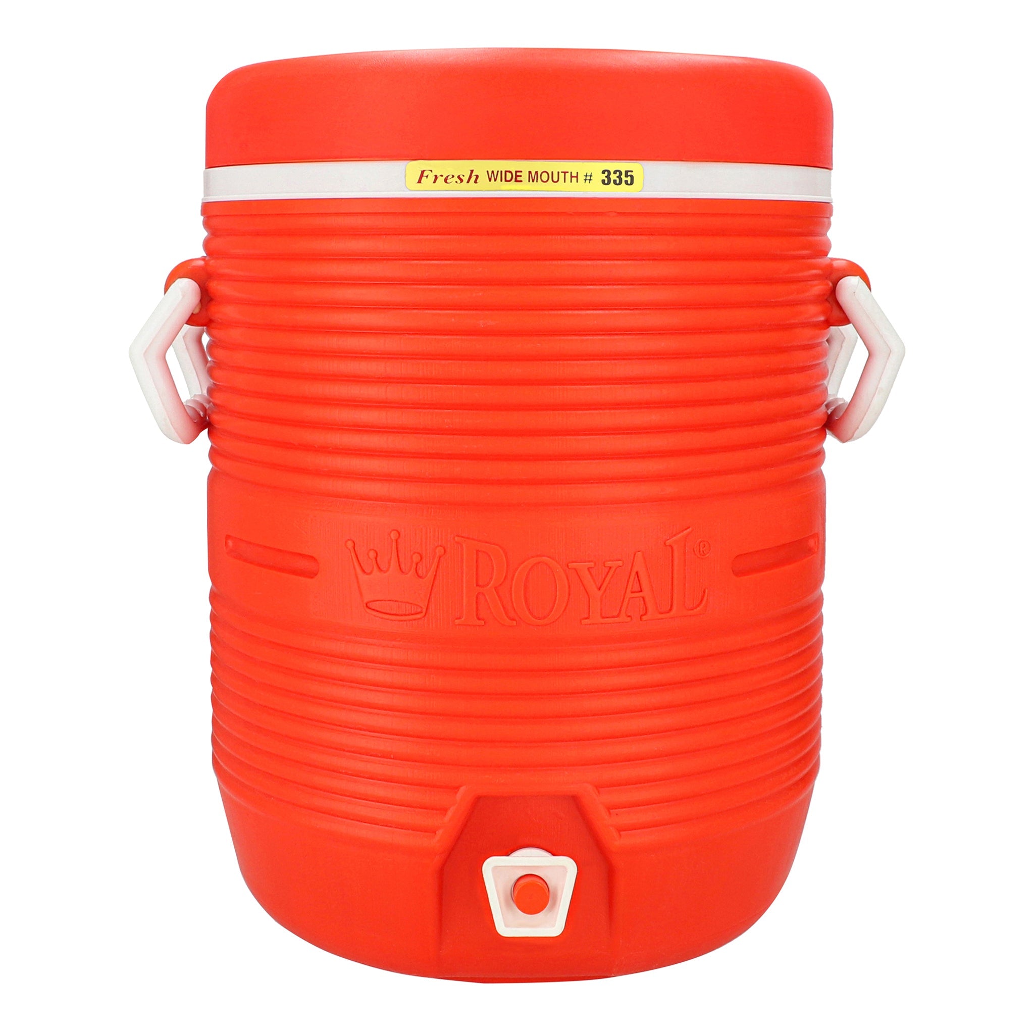 Royal fresh wide mouth 19 liter water cooler is thermo-guard insulated, keeping beverages cold for hours. Constructed with crack-resistant high density polyethylene, this insulated water cooler will last for years. Its double-walled air tight pressure fit lid prevents leaks and built in handle on lid provides easy opening and closing with one hand.
