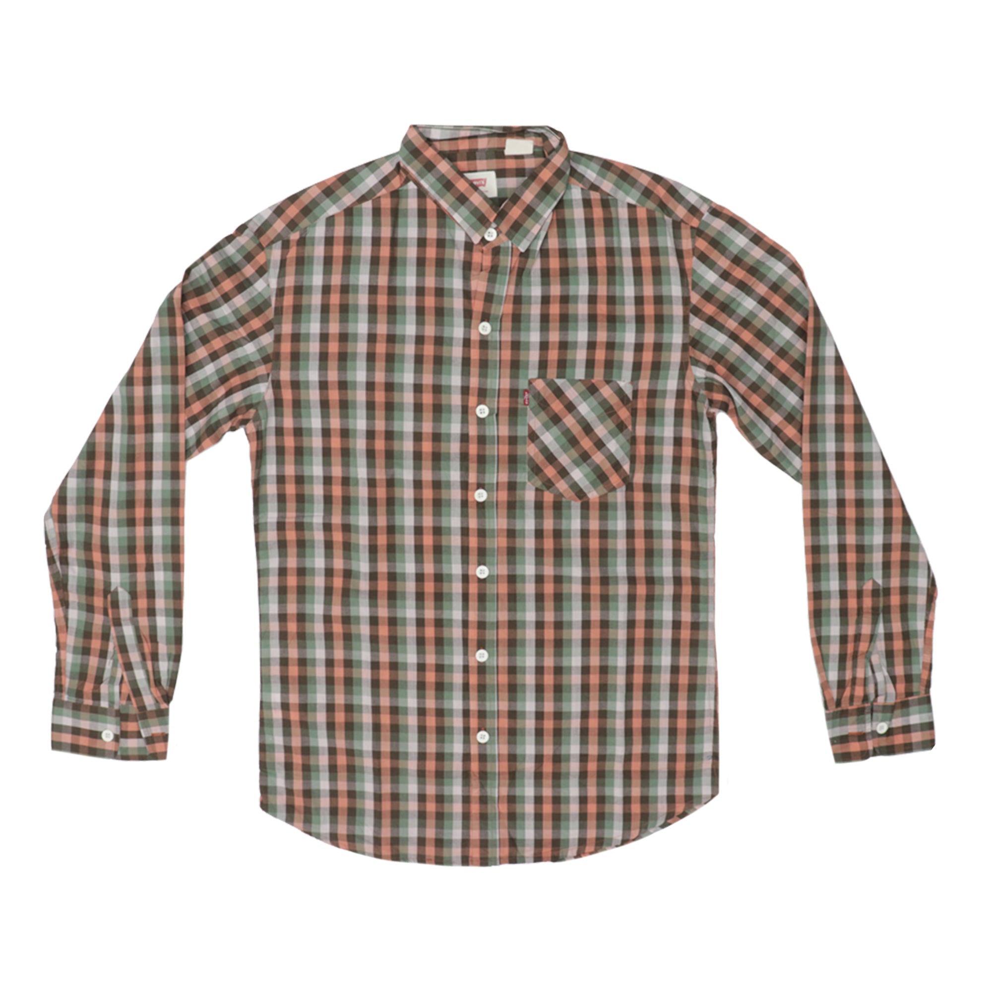 CASUAL SHIRT (MEN) - ORANGE, BLACK & GREEN CHECKS WITH FRONT POCKET