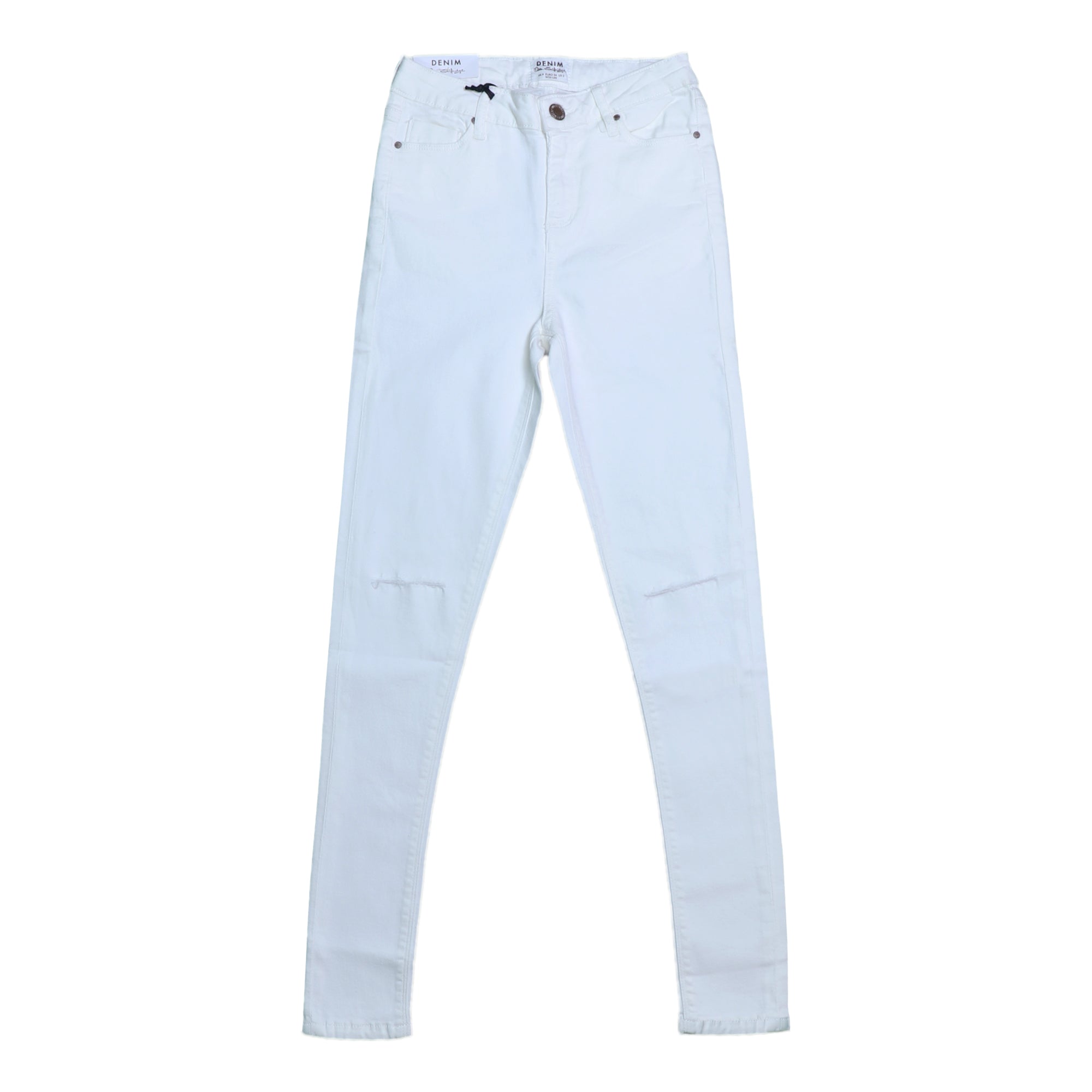 KNEE CUT DENIM JEANS (WOMEN) - WHITE