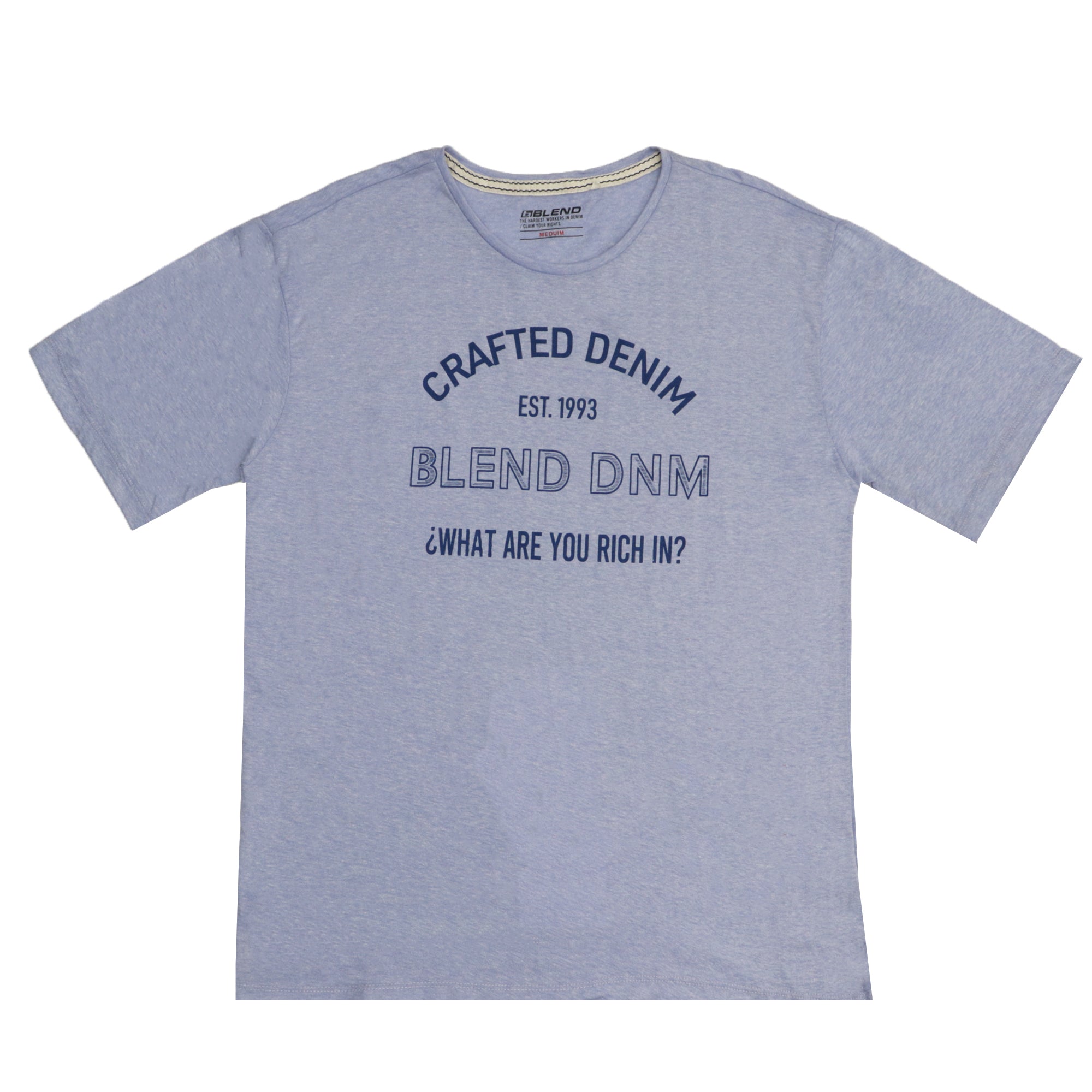 ROUND NECK (MEN) - LIGHT PURPLE WITH DARK BLUE PRINT (CRAFTED DENIM)